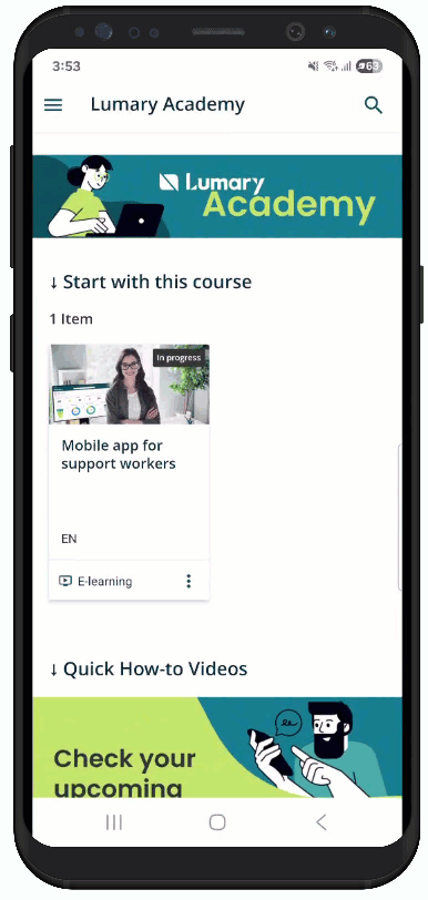 š± Mobile app for support workers Course videos and content have been updated to reflect the latest version of Lumary DC, including the new Shift Offers feature. |